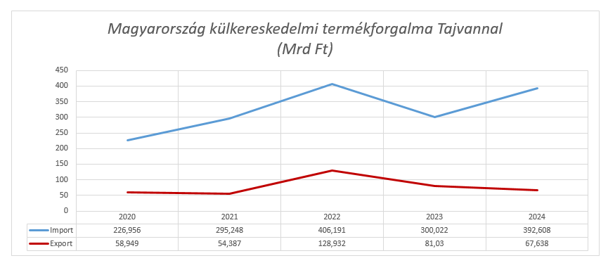 #1: 2022-ben a Magyarország és Tajvan közötti külkereskedelemi mérleg rekord mennyiséget ért el (1,47 milliárd amerikai dollár).